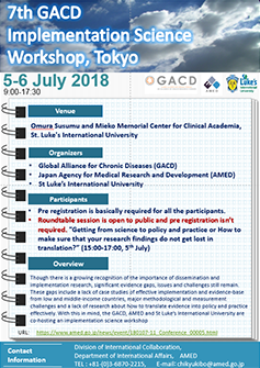 7th GACD Implementation Science Workshop is going to be held on 5 and 6 July, 2018 in Tokyo, Japan.