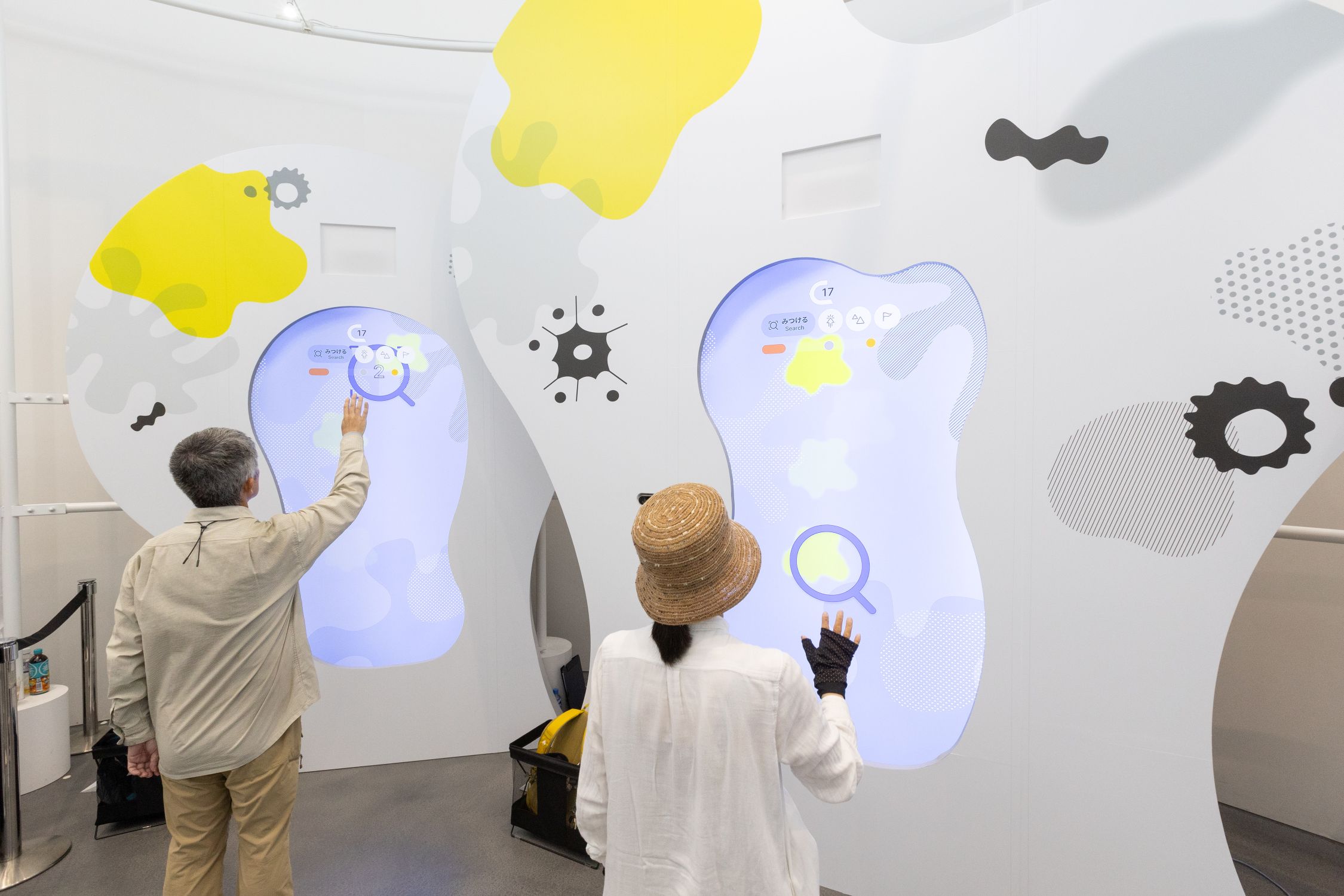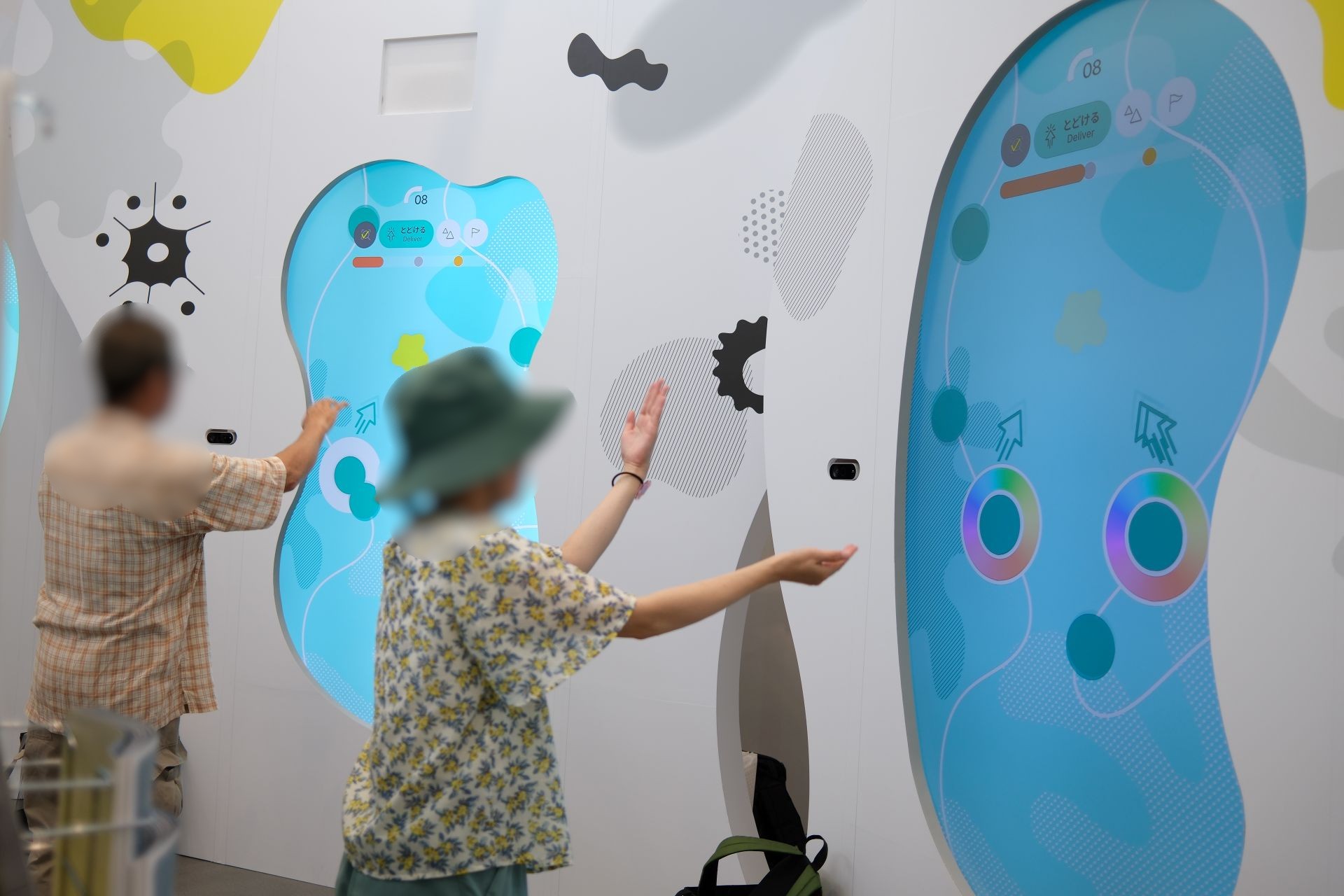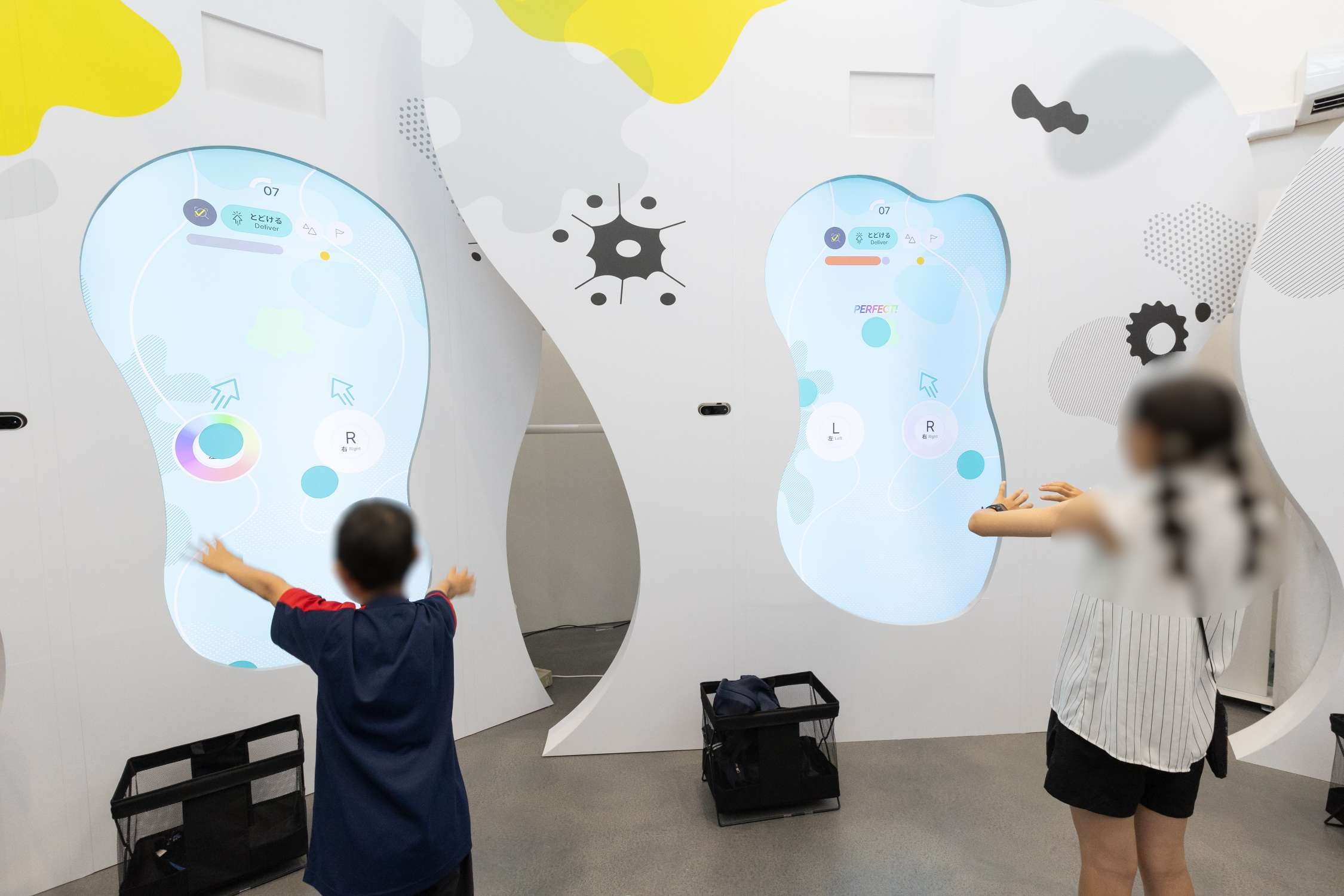 ムーンショット目標7の3つのターゲットを「みつける」・「とどける」・「あわせる」とし、それぞれにちなんだ体験型ゲーム。「みつける」 慢性炎症を早期みつけることで予防につなげます。「とどける」 誰でもどこにいても必要な医療にアクセスできるようになります。