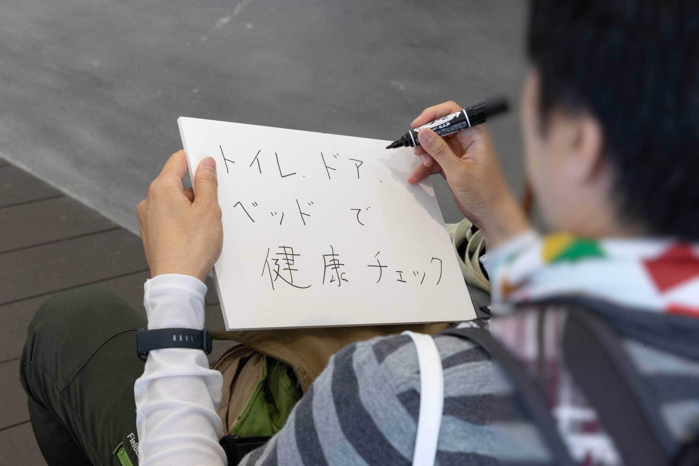 井上 咲楽さんにも老化体験キットを装着いただき、見え方や聞こえ方、動きの制限について体験いただきました。井上 咲楽さん、ご参加の皆様ありがとうございました!!イベントを盛り上げてくださった MC 前田 紗希さん(上)、華を添えてくださったグラフィックレコーダー 春仲 萌絵さん(中)、支えてくださったスタッフのみなさん(下)ありがとうございました!!
