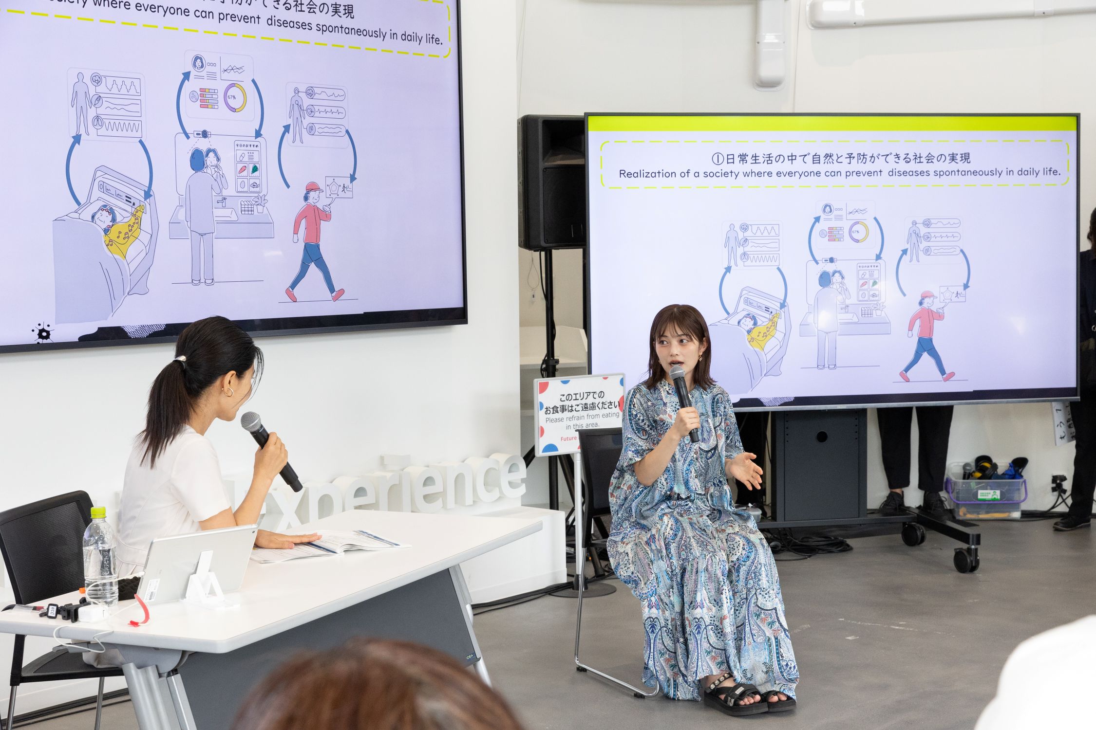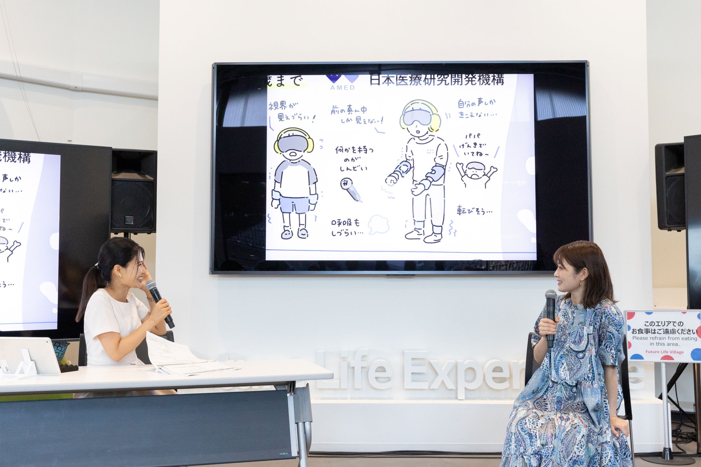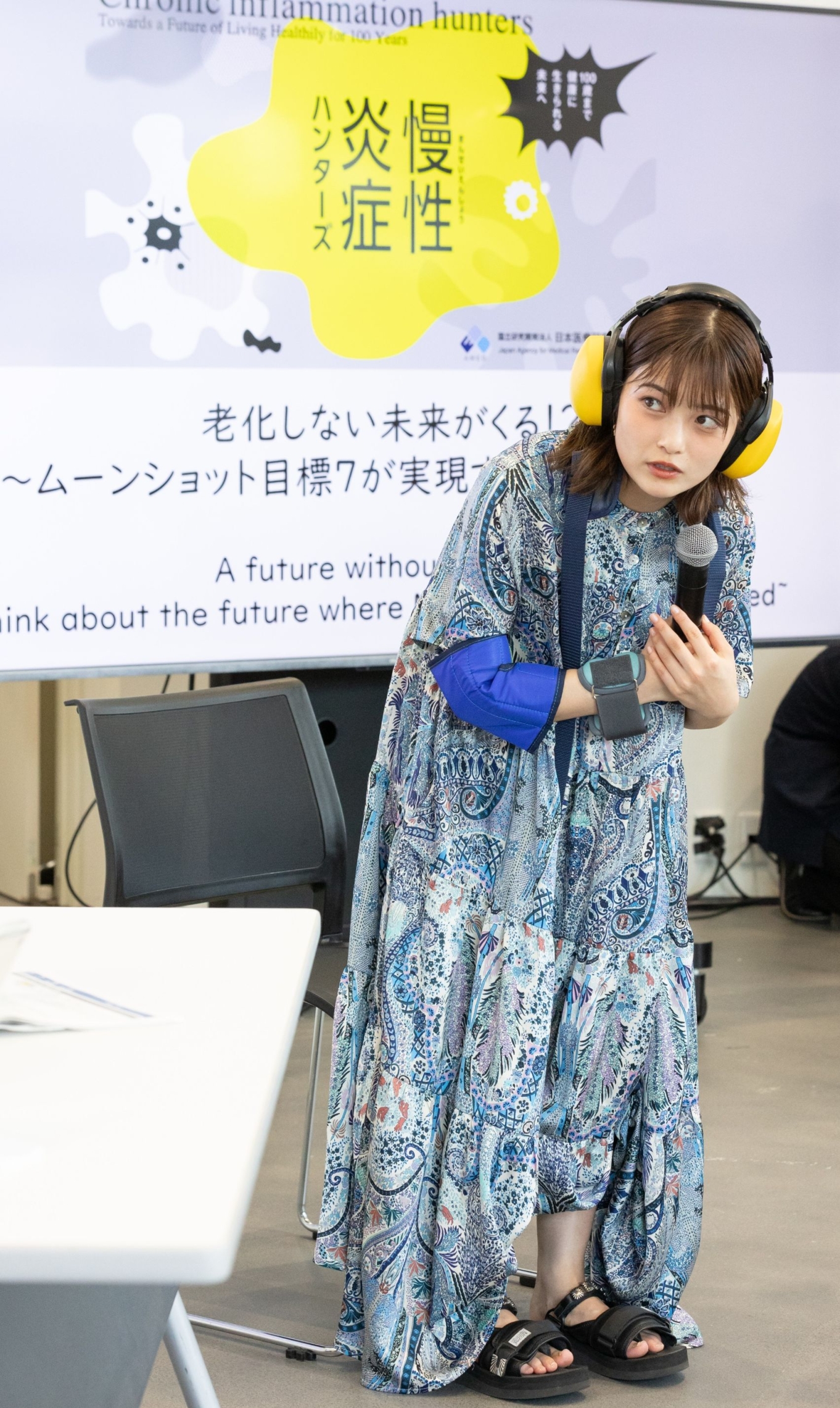 ゲストに井上 咲楽(いのうえ さくら)さんをお招きしました。井上 咲楽さんとともに「ムーンショット目標7が実現する未来」について考えました。参加者の方にも老化の体験をしていただきました。(第一部)