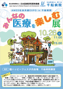 このたび、社会医療法人愛仁会千船病院(大阪市)が開催する福ハッピーフェスタに、AMED社会共創EXPOの取組として「みんなの医療を楽しむ展」を出展します。多くの方のご来場をお待ちしています。