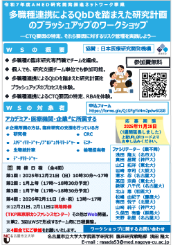 「多職種連携によるQbD を踏まえた研究計画のブラッシュアップのワークショップ」 ―CTQ 要因の特定、それら要因に対するリスク管理を実践しよう―