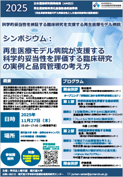 事業に関するお知らせ 【シンポジウム開催のお知らせ】再生医療モデル病院が支援する科学的妥当性を評価する臨床研究の実例と品質管理の考え方