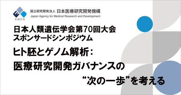 中釜理事長も登壇!日本人類遺伝学会第70回大会AMEDスポンサードシンポジウム『ヒト胚とゲノム解析:医療研究開発ガバナンスの”次の一歩”を考える』
