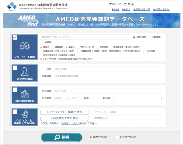 AMEDが推進する研究開発課題の情報を検索・閲覧できる「AMED研究開発課題データベース(AMEDfind)」の開発を進め、2018年6月から公開しました。