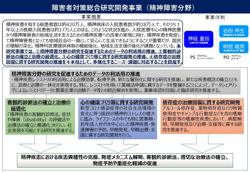令和7年4月24日令和7年度 「障害者対策総合研究開発事業(精神障害分野)」の採択課題について