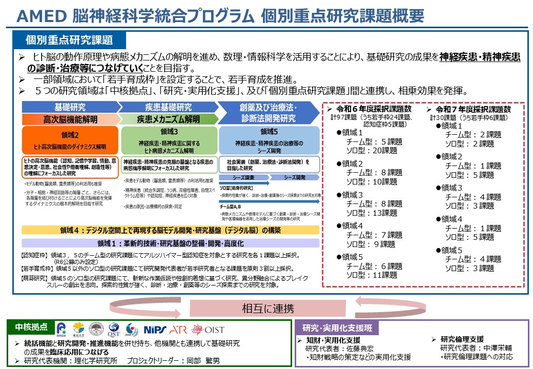 令和7年6月25日 若手あり令和7年度 「脳神経科学統合プログラム(個別重点研究課題)」の採択課題について